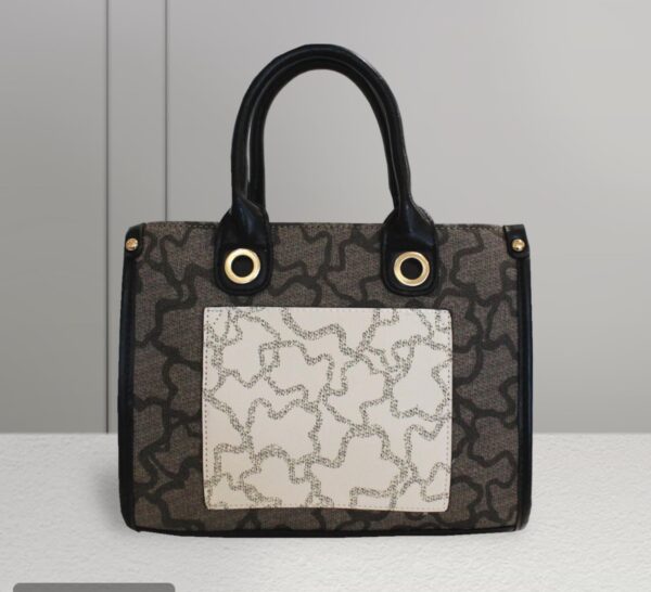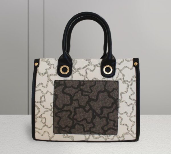 Descubre este exclusivo bolso de mano con estampado abstracto en blanco y negro, ideal para mujeres modernas que buscan estilo y funcionalidad. Con asas resistentes en cuero sintético negro y detalles metálicos dorados, este bolso combina elegancia y durabilidad. Su diseño geométrico central aporta un toque artístico único que lo hace destacar en cualquier ocasión. Perfecto para el uso diario o eventos especiales.
